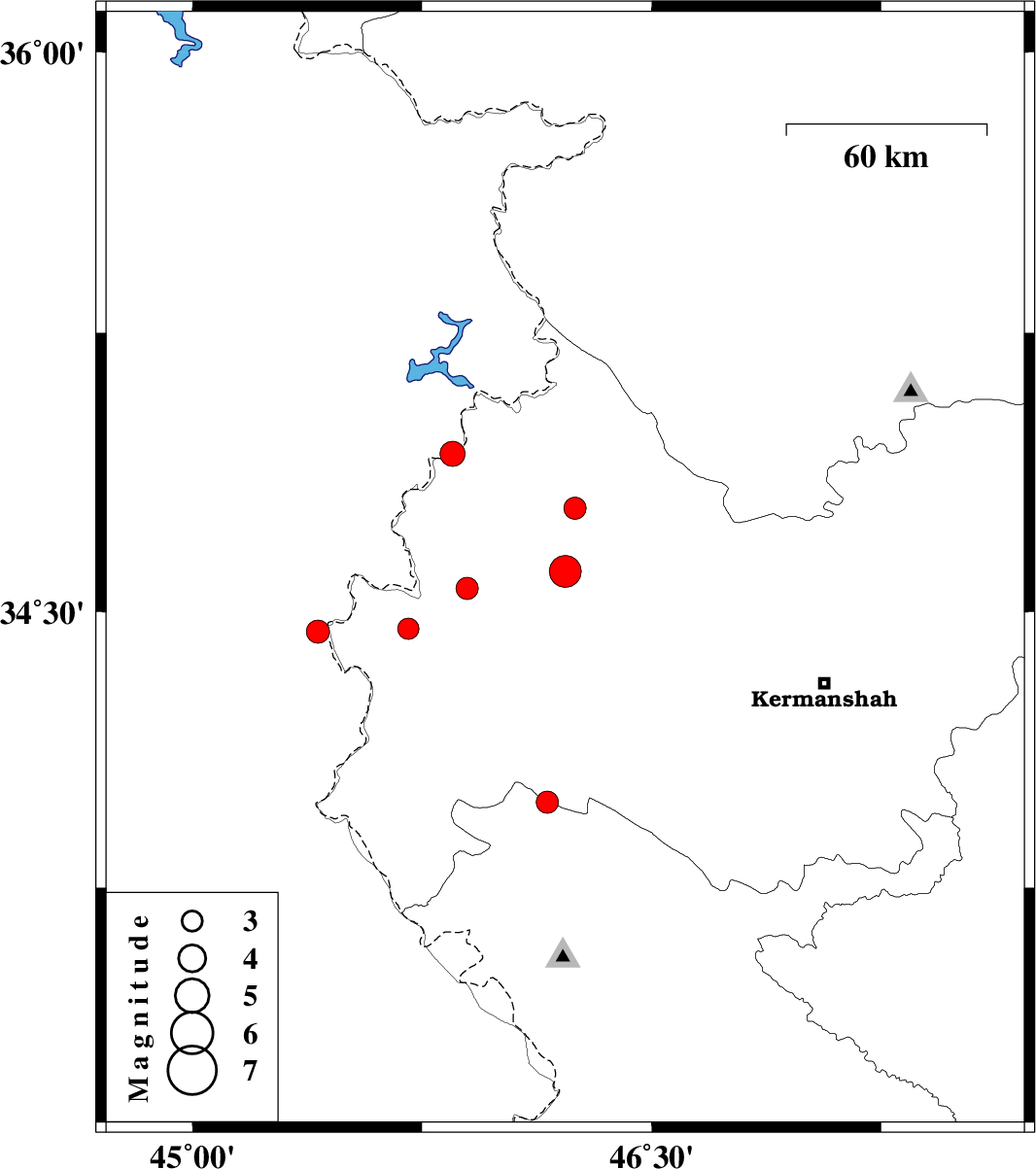 | 2018/07/15 | 07:11:01.0 | 11:41:01.0 | 34.608 | 46.218 | 14 | ML:4.6 | Kermanshah Province, 33 km South-West of Javanrud | ||