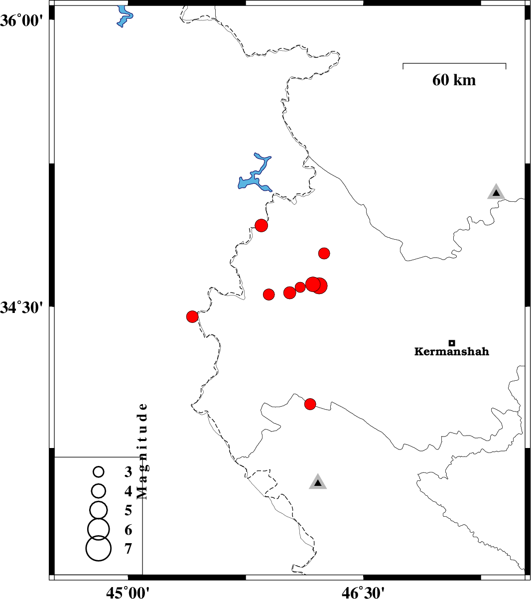 | 2018/07/15 | 07:11:01.0 | 11:41:01.0 | 34.608 | 46.218 | 14 | ML:4.6 | Kermanshah Province, 33 km South-West of Javanrud | ||