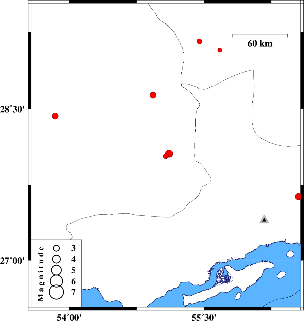 | 2018/07/11 | 02:30:26.7 | 07:00:26.7 | 28.635 | 54.933 | 14 | ML:3.1 | Fars Province, 41 km South-East of Darab | ||