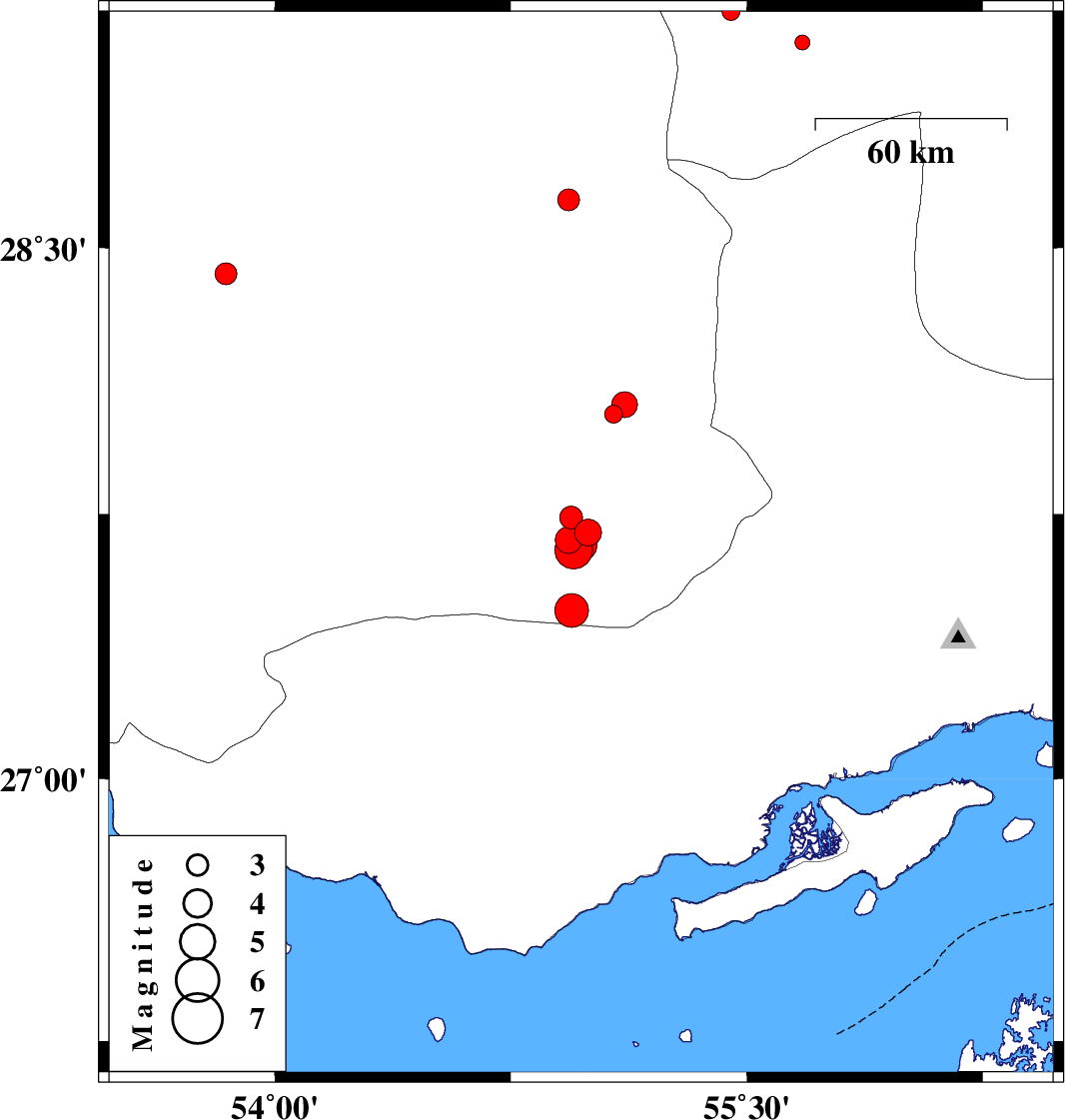2018/07/22 05:07:04.5 09:37:04.5 27.64954.9516 ML:5.3 Fars Province, 60 km -East of Lar