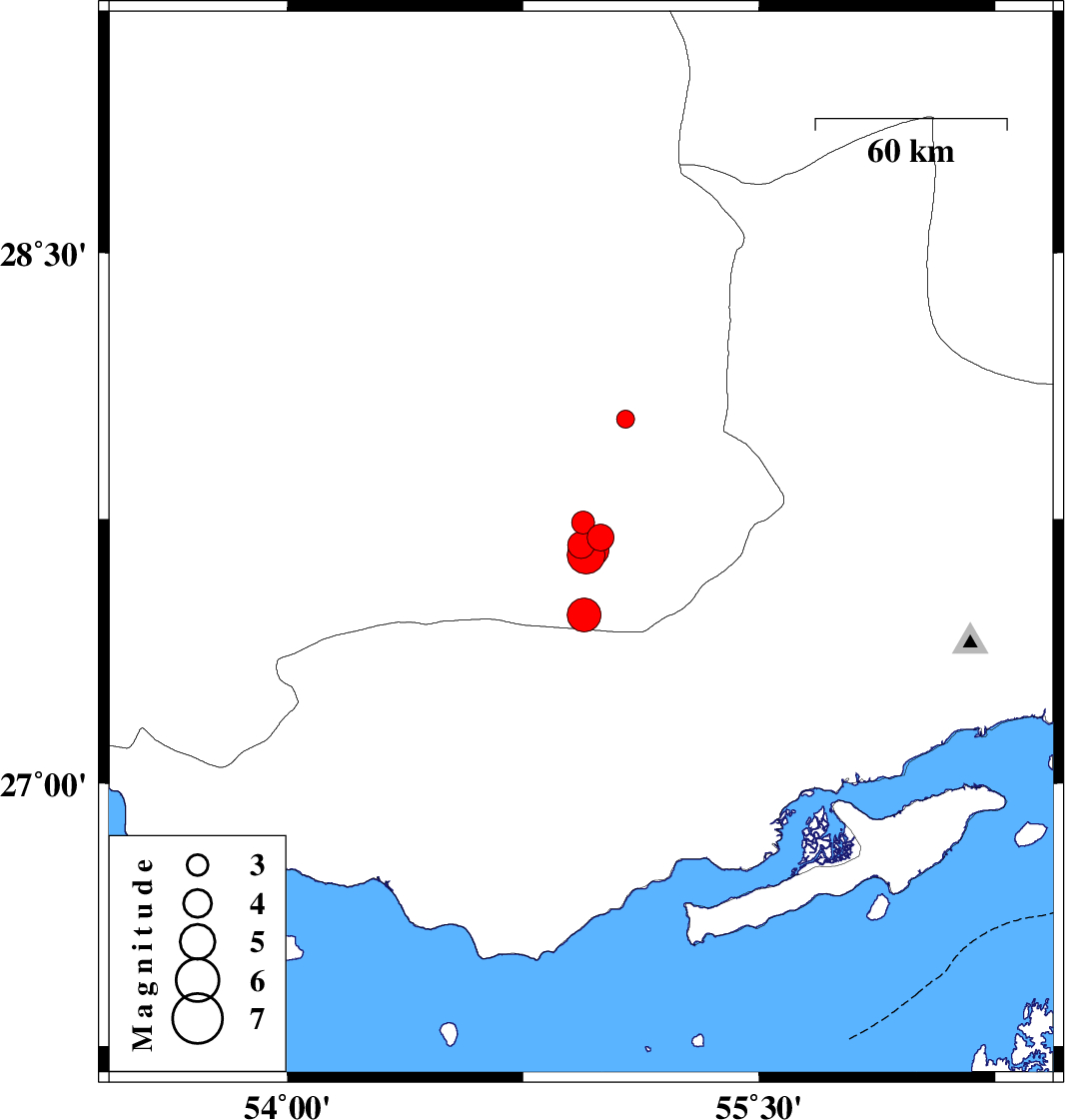 2018/07/22 05:07:04.5 09:37:04.5 27.64954.9516 ML:5.3 Fars Province, 60 km -East of Lar
