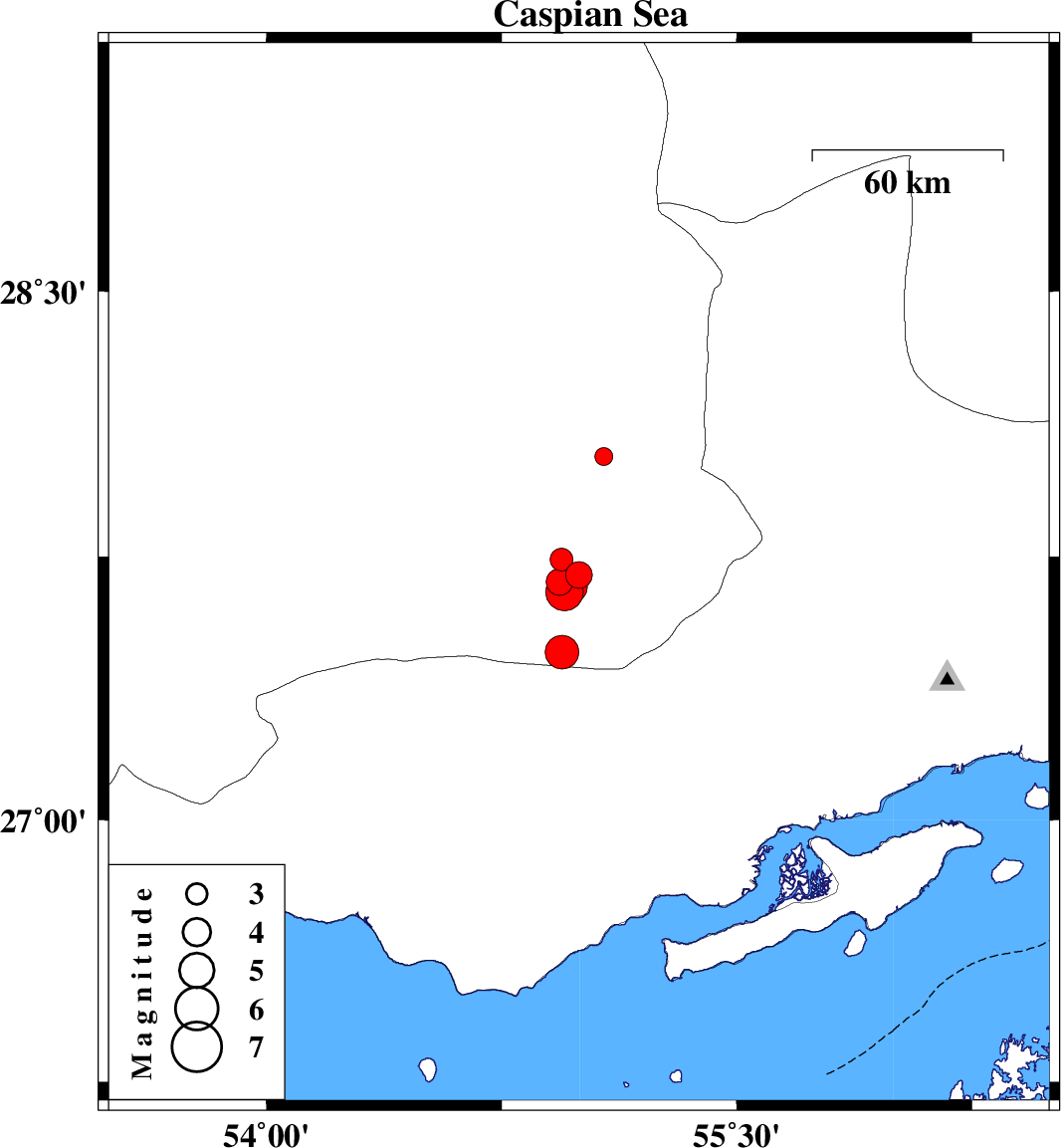 | 2018/07/22 | 05:07:04.5 | 09:37:04.5 | 27.649 | 54.95 | 16 | ML:5.3 | Fars Province, 60 km -East of Lar | ||
