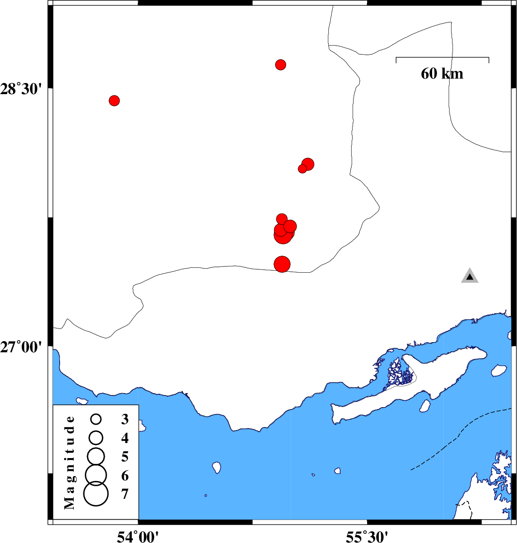 2018/07/22 05:07:04.5 09:37:04.5 27.64954.9516 ML:5.3 Fars Province, 60 km -East of Lar