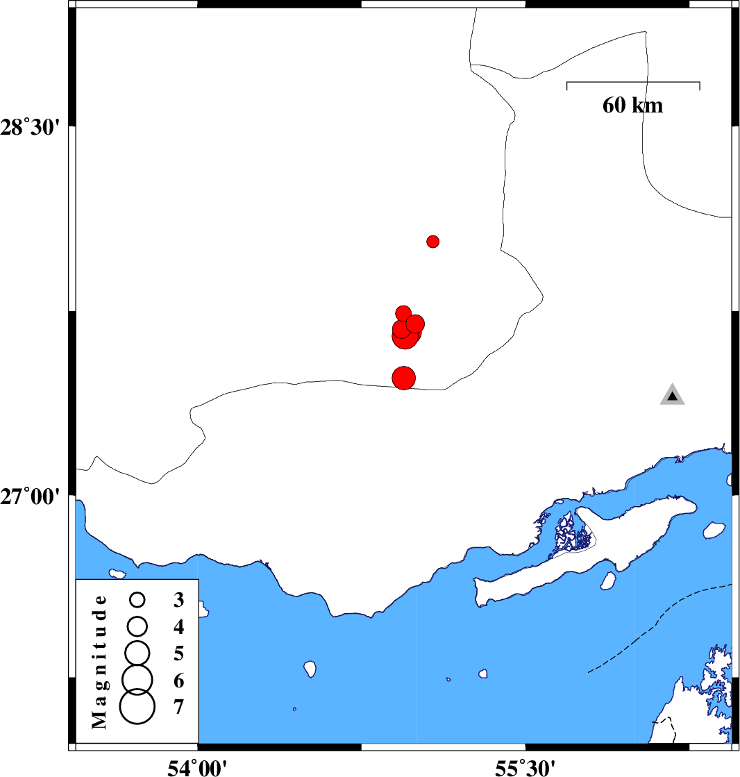 | 2018/07/22 | 05:07:04.5 | 09:37:04.5 | 27.649 | 54.95 | 16 | ML:5.3 | Fars Province, 60 km -East of Lar | ||