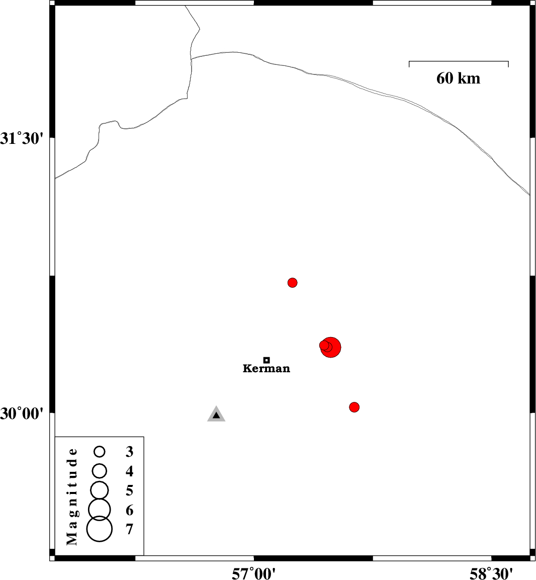 | 2018/07/26 | 23:35:22.4 | 04:05:22.4 | 30.712 | 57.242 | 14 | ML:2.7 | Kerman Province, 50 km North-East of Kerman | ||