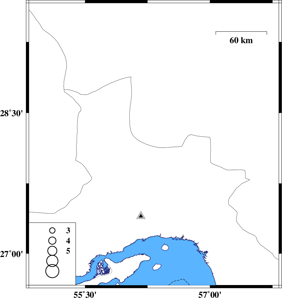 | 2018/08/11 | 12:09:46.5 | 16:39:46.5 | 28.159 | 56.326 | 18 | ML:3.6 | Kerman Province, 45 km South-East of Hajiabad |