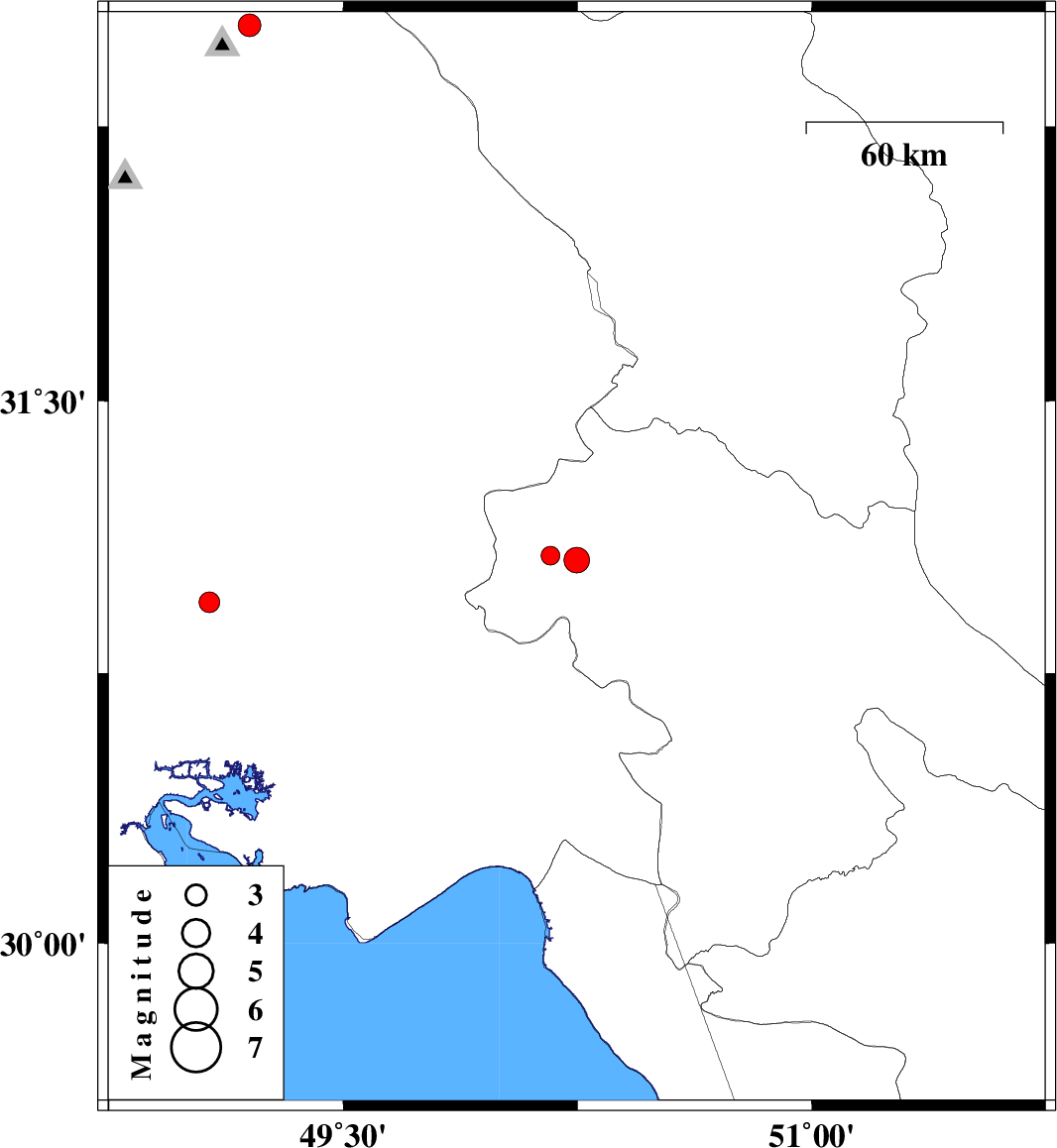 | 2018/08/13 | 14:02:37.4 | 18:32:37.4 | 30.946 | 49.071 | 15 | ML:3 | Khoozestan Province, 45 km North-West of Bandar-e mahshahr | ||