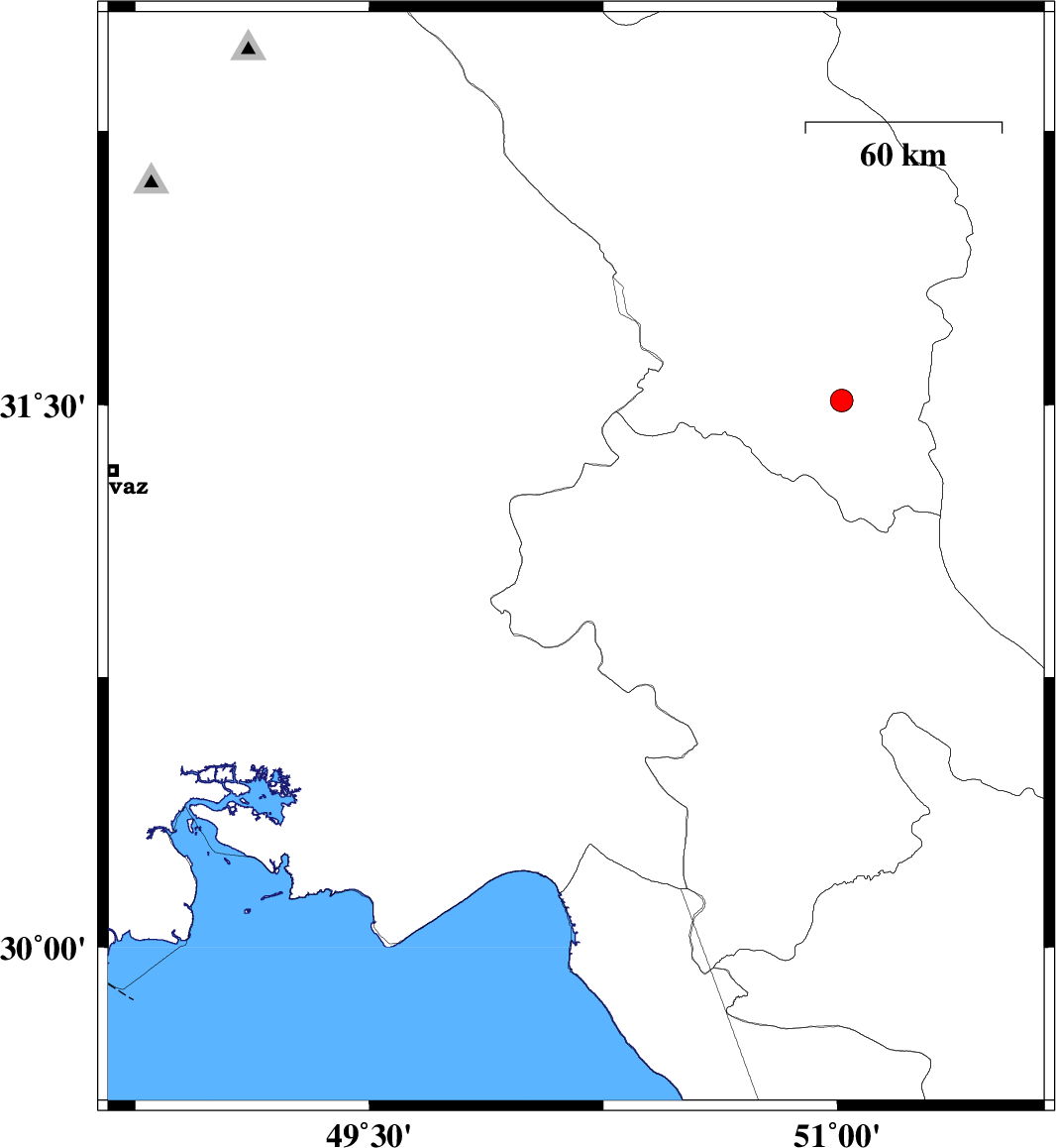 | 2018/08/13 | 14:02:37.4 | 18:32:37.4 | 30.946 | 49.071 | 15 | ML:3 | Khoozestan Province, 45 km North-West of Bandar-e mahshahr | ||
