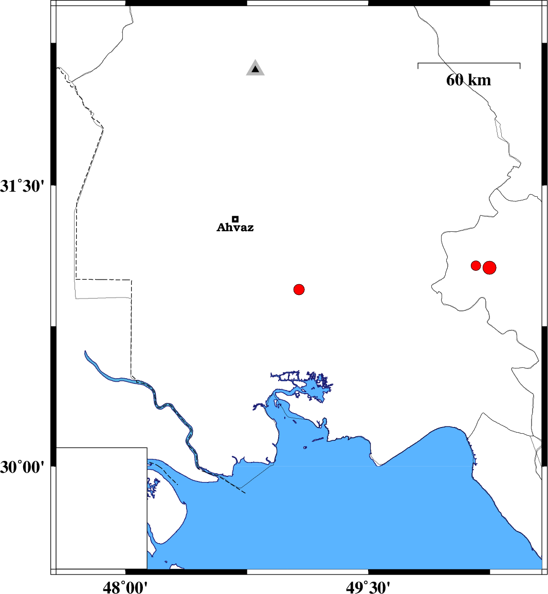 | 2018/08/13 | 14:02:37.4 | 18:32:37.4 | 30.946 | 49.071 | 15 | ML:3 | Khoozestan Province, 45 km North-West of Bandar-e mahshahr | ||