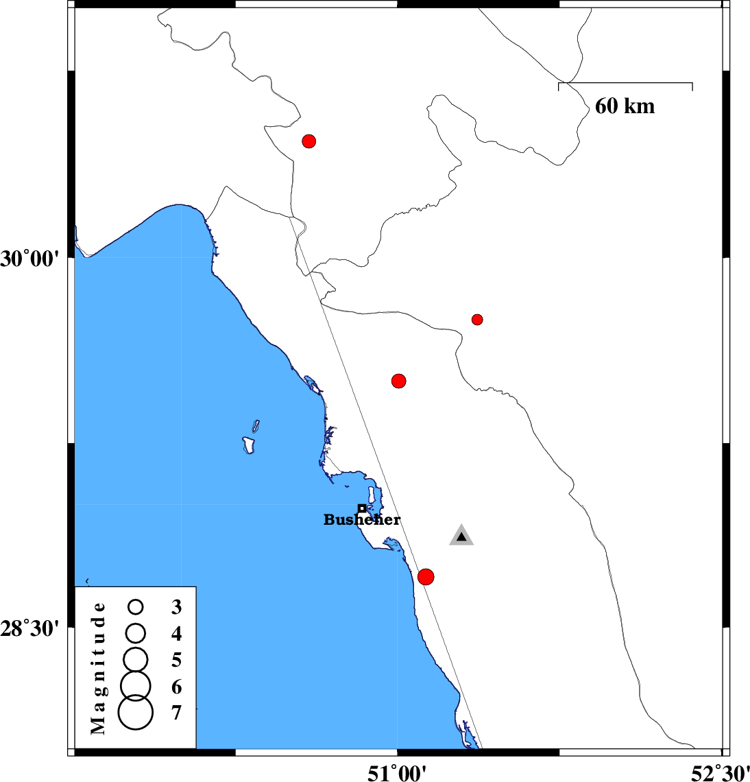 | 2018/08/15 | 03:04:34.0 | 07:34:34.0 | 29.502 | 51.006 | 10 | ML:2.9 | Bushehr Province, 33 km North-West of Borazjan | ||