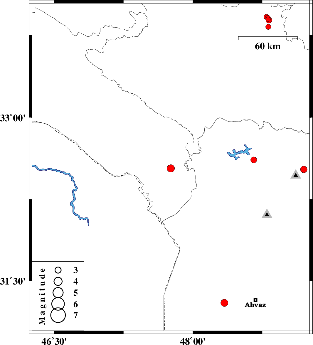 | 2018/08/12 | 03:28:01.9 | 07:58:01.9 | 32.612 | 48.658 | 17 | ML:2.9 | Khoozestan Province, 33 km North-East of Andimeshk |