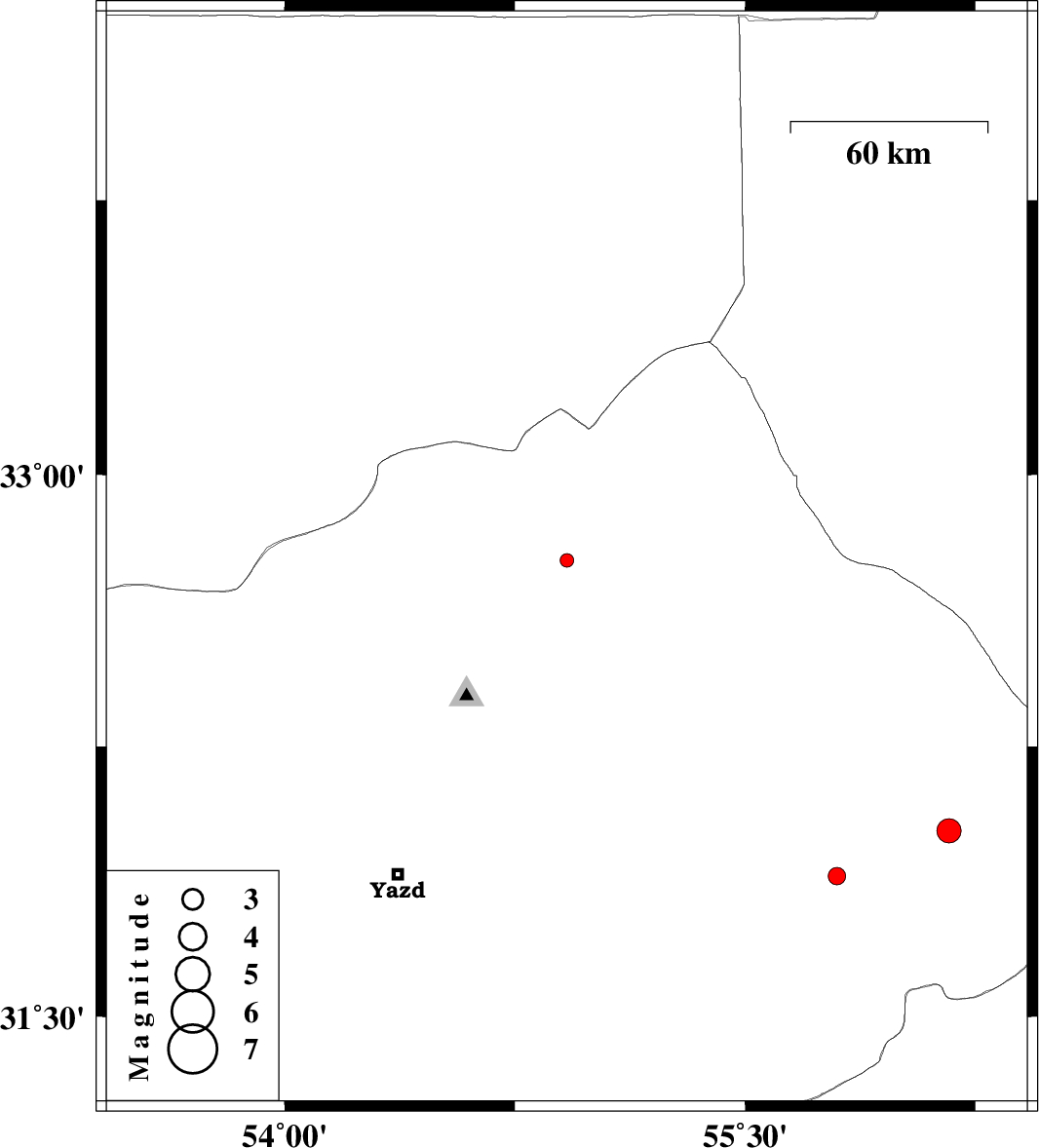 | 2018/07/30 | 08:10:34.7 | 12:40:34.7 | 31.89 | 55.799 | 14 | ML:2.5 | Yazd Province, 50 km North-East of Bafq | ||
