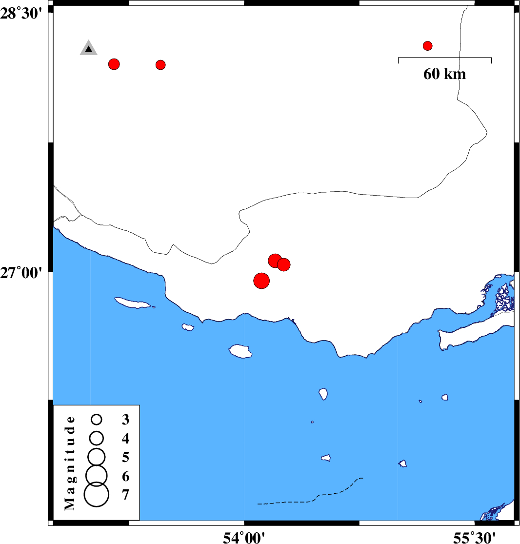 | 2018/08/12 | 08:00:13.4 | 12:30:13.4 | 28.199 | 53.456 | 18 | ML:2.8 | Fars Province, 35 km South-West of Jahrom | ||
