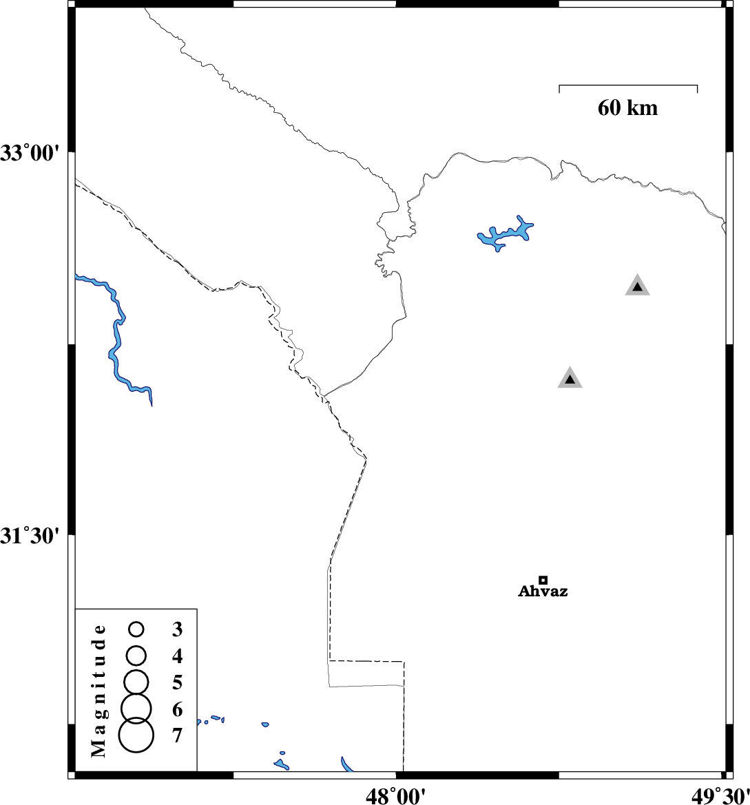 | 2018/08/27 | 23:45:57.5 | 04:15:57.5 | 32.06 | 48.02 | 15 | ML:2.9 | Khoozestan Province, 27 km South-West of Shush |