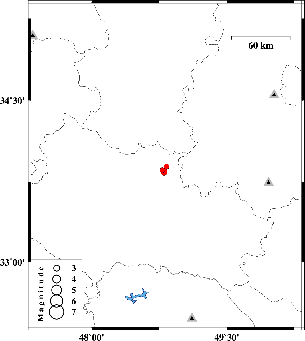 | 2018/08/27 | 22:57:29.2 | 03:27:29.2 | 33.836 | 48.803 | 15 | ML:3.1 | Lorestan Province, 8 km of Borujerd |