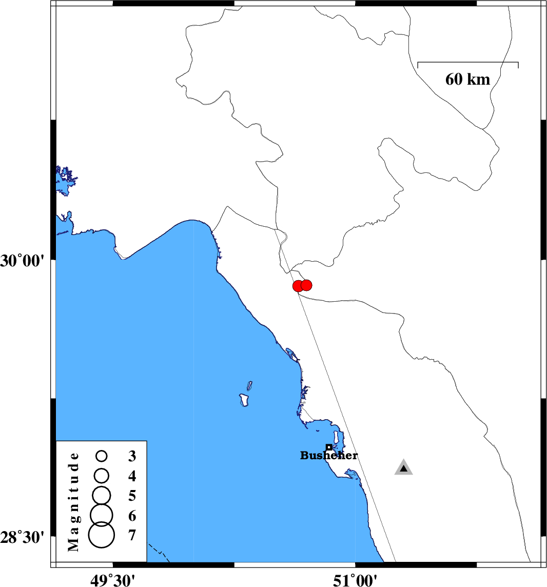 | 2018/09/10 | 12:35:26.3 | 17:05:26.3 | 29.858 | 50.647 | 6 | ML:3.2 | Bushehr Province, 34 km North-East of Bandar-e genaveh |