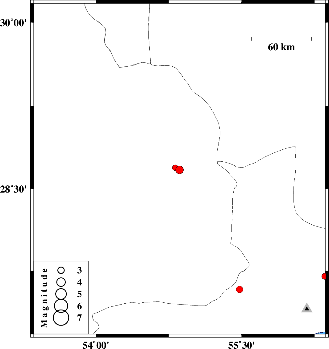 | 2018/09/14 | 07:18:44.3 | 11:48:44.3 | 27.58 | 55.479 | 6 | ML:3.1 | Hormozgan Province, 91 km South-West of Hajiabad | ||