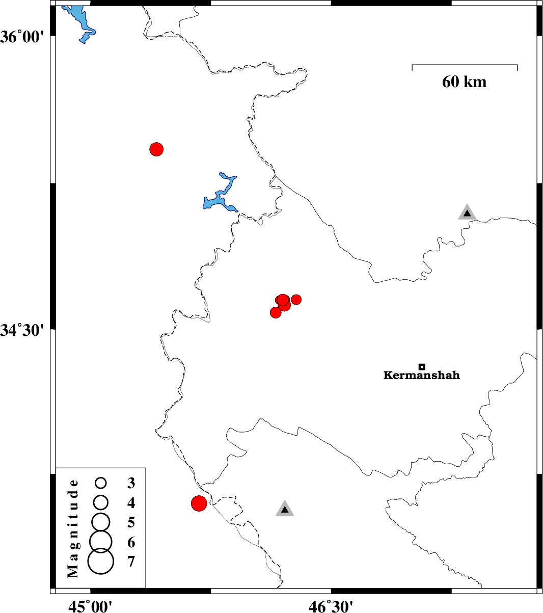 | 2018/09/17 | 21:06:36.3 | 01:36:36.3 | 34.65 | 46.209 | 6 | ML:2.9 | Kermanshah Province, 30 km South-West of Javanrud | ||