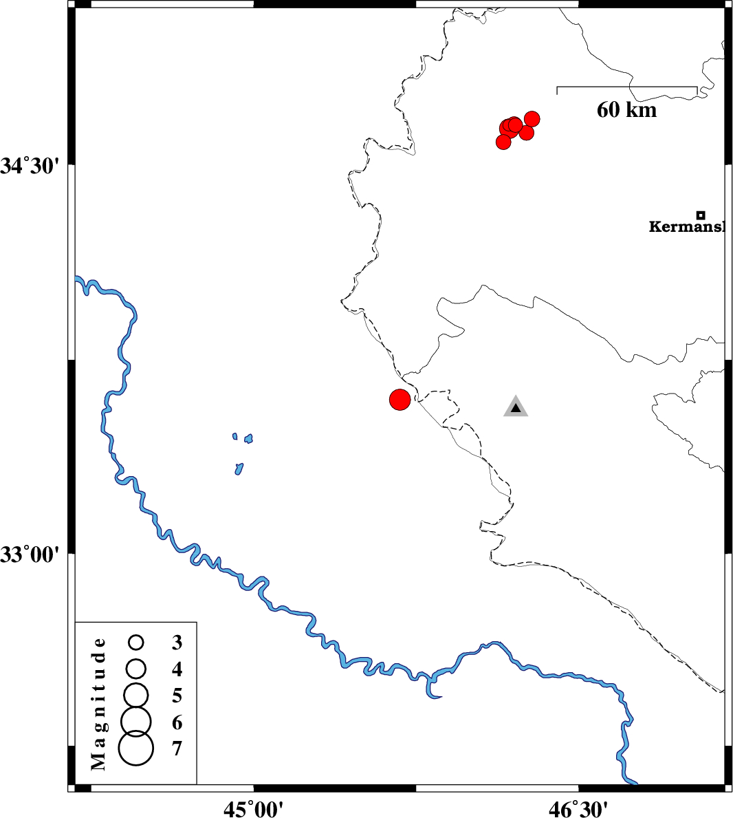 | 2018/09/17 | 21:06:36.3 | 01:36:36.3 | 34.65 | 46.209 | 6 | ML:2.9 | Kermanshah Province, 30 km South-West of Javanrud | ||