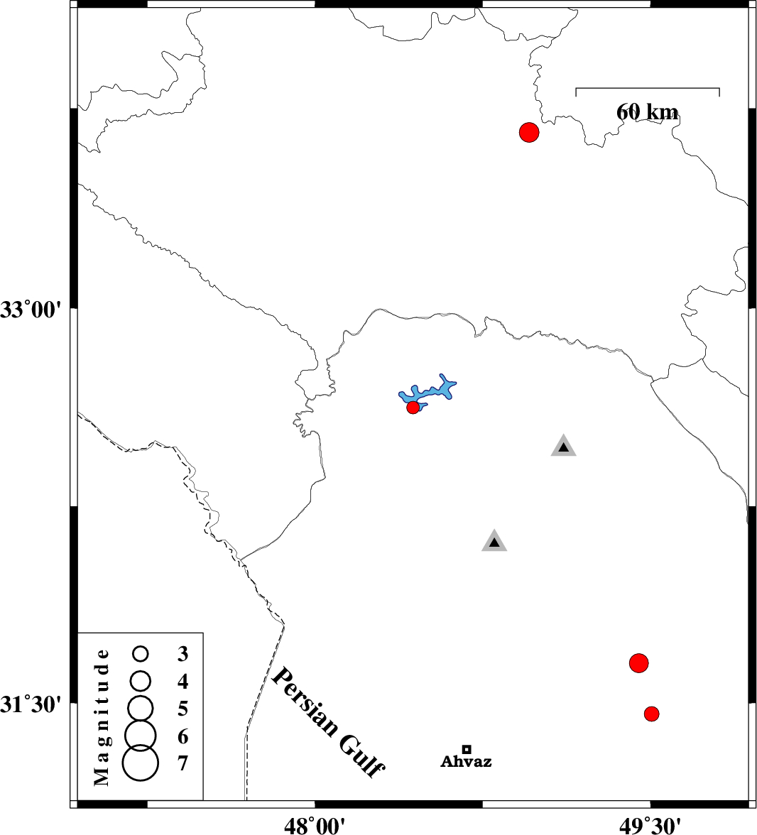 | 2018/09/23 | 08:51:53.1 | 12:21:53.1 | 32.625 | 48.438 | 14 | ML:2.5 | Khoozestan Province, 20 km North of Andimeshk | ||