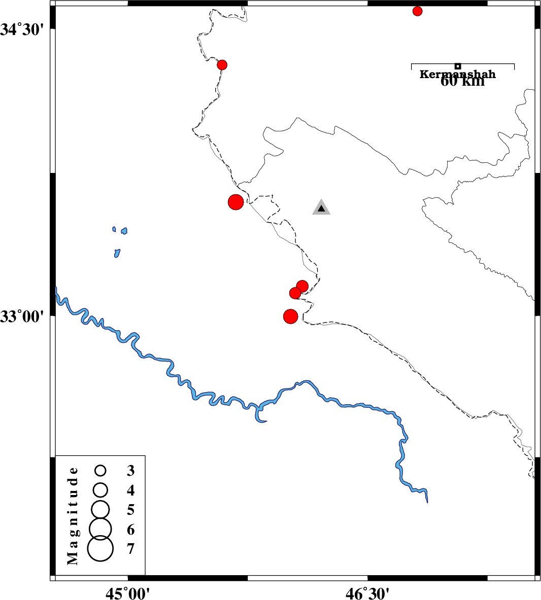 | 2018/09/19 | 19:29:19.6 | 23:59:19.6 | 33.597 | 45.675 | 15 | ML:4.4 | Iraq, 65 km South-West of Gilan-E-Gharb |