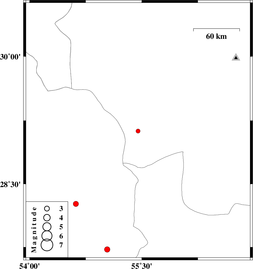 | 2018/09/23 | 03:53:02.5 | 07:23:02.5 | 27.722 | 55.038 | 14 | ML:3.4 | Fars Province, 69 km -East of Lar |