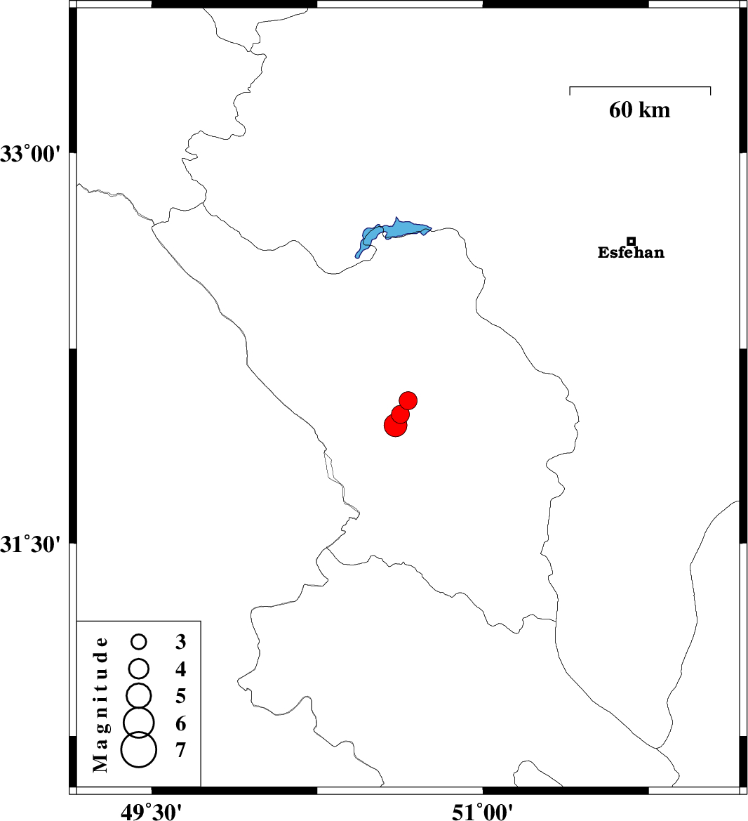 | 2018/10/02 | 02:42:50.5 | 06:12:50.5 | 31.956 | 50.604 | 13 | ML:4.6 | Chaharmahal Bakhtiari Province, 6 km of Ardel |