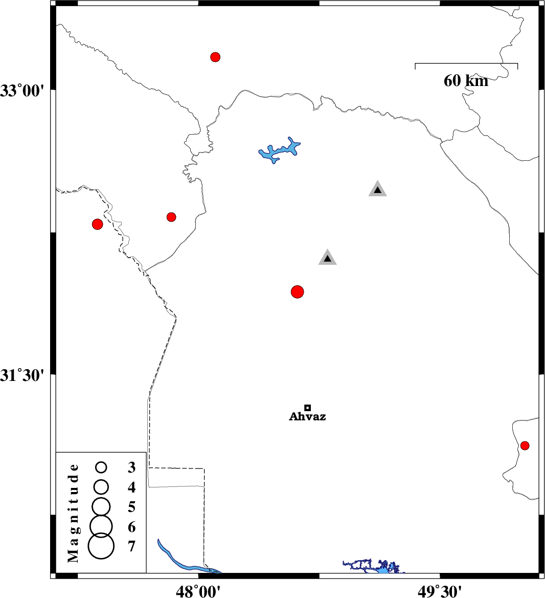 | 2018/09/30 | 17:44:07.9 | 21:14:07.9 | 32.293 | 47.372 | 14 | ML:2.9 | Iraq, 46 km South-East of Dehloran |