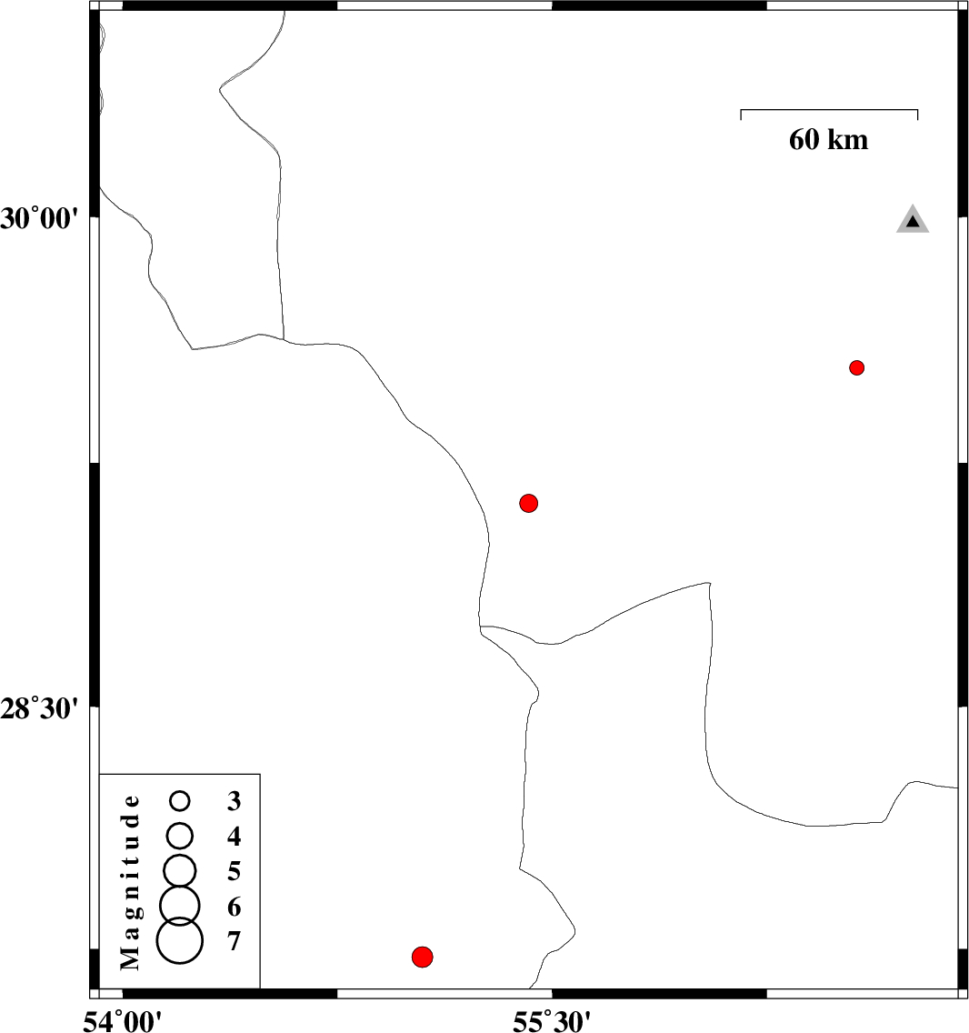 | 2018/10/02 | 10:53:15.2 | 14:23:15.2 | 27.725 | 55.047 | 15 | ML:3.2 | Fars Province, 70 km -East of Lar |