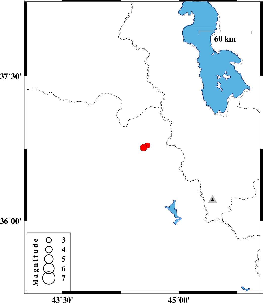 | 2018/10/14 | 15:08:31.5 | 18:38:31.5 | 36.76 | 44.544 | 14 | ML:4 | Iraq, 53 km -West of Piranshahr | ||