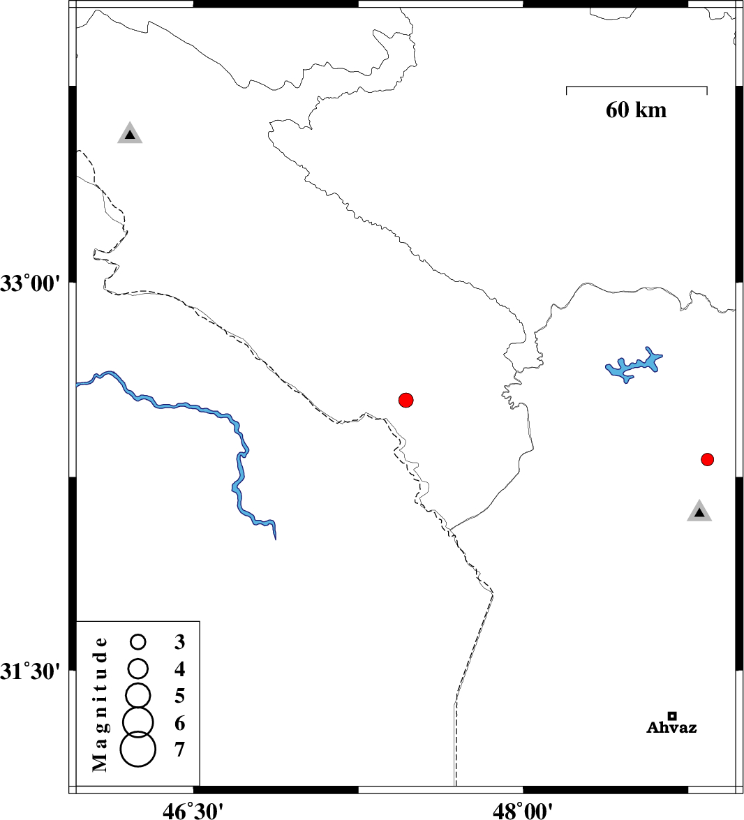 | 2018/10/15 | 17:07:18.1 | 20:37:18.1 | 32.318 | 48.838 | 14 | ML:2.5 | Khoozestan Province, 31 km North of Shushtar |