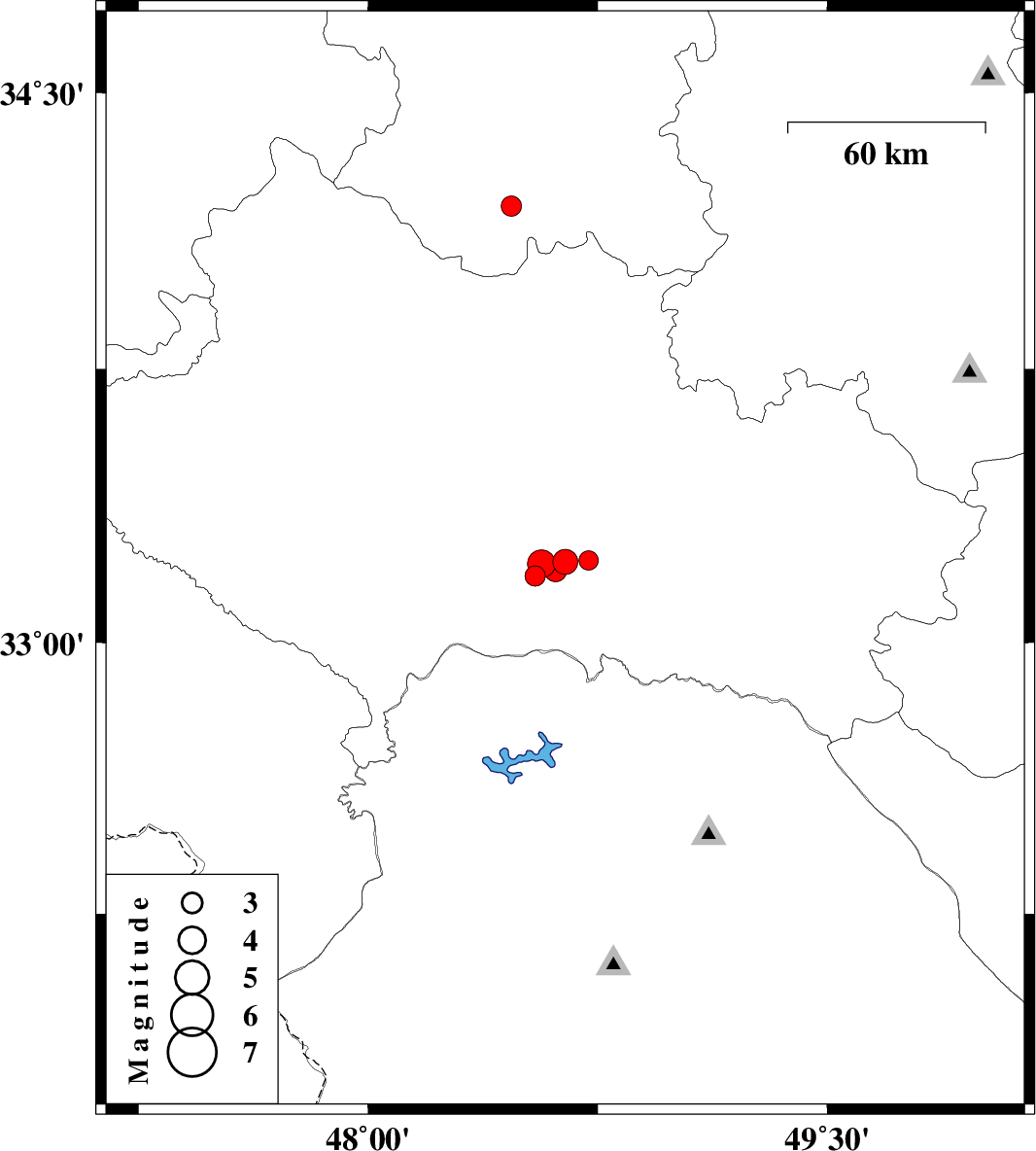 | 2018/10/29 | 13:47:00.1 | 17:17:00.1 | 33.221 | 48.644 | 14 | ML:3.6 | Lorestan Province, 39 km South-East of Khorramabad | ||