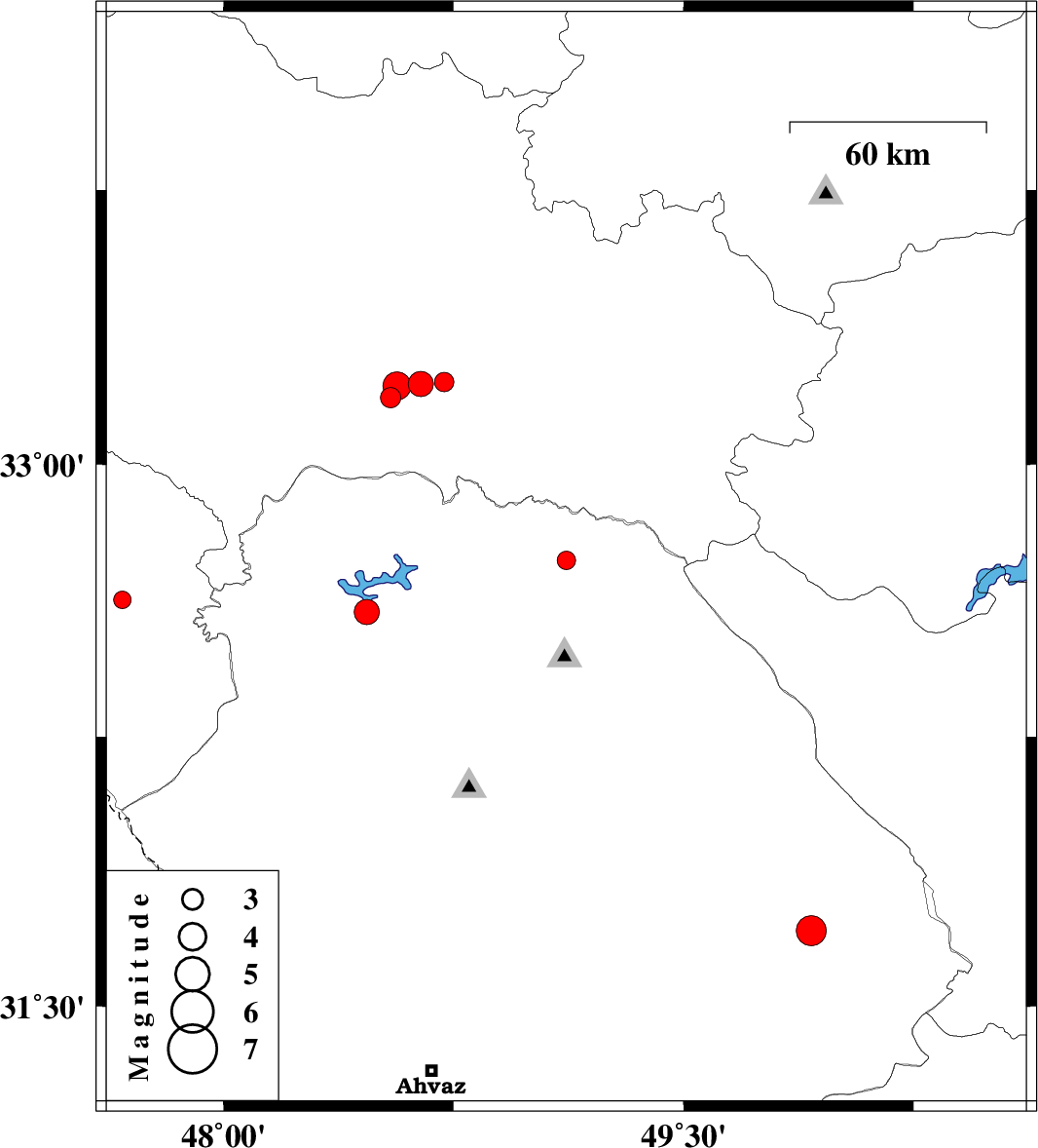 | 2018/10/31 | 20:00:19.6 | 23:30:19.6 | 32.594 | 48.467 | 15 | ML:3.7 | Khoozestan Province, 18 km North-East of Andimeshk | ||