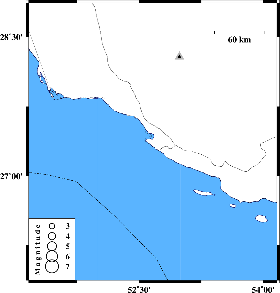| 2018/11/05 | 04:46:17.0 | 08:16:17.0 | 27.361 | 52.664 | 16 | ML:3.6 | Bushehr Province, 30 km South-West of Mehr |