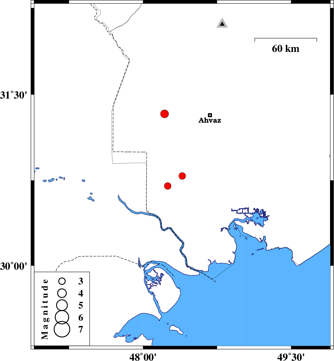 | 2018/11/12 | 10:37:59.5 | 14:07:59.5 | 30.701 | 48.249 | 15 | ML:3.1 | Khoozestan Province, 31 km North of Khorramshahr | ||