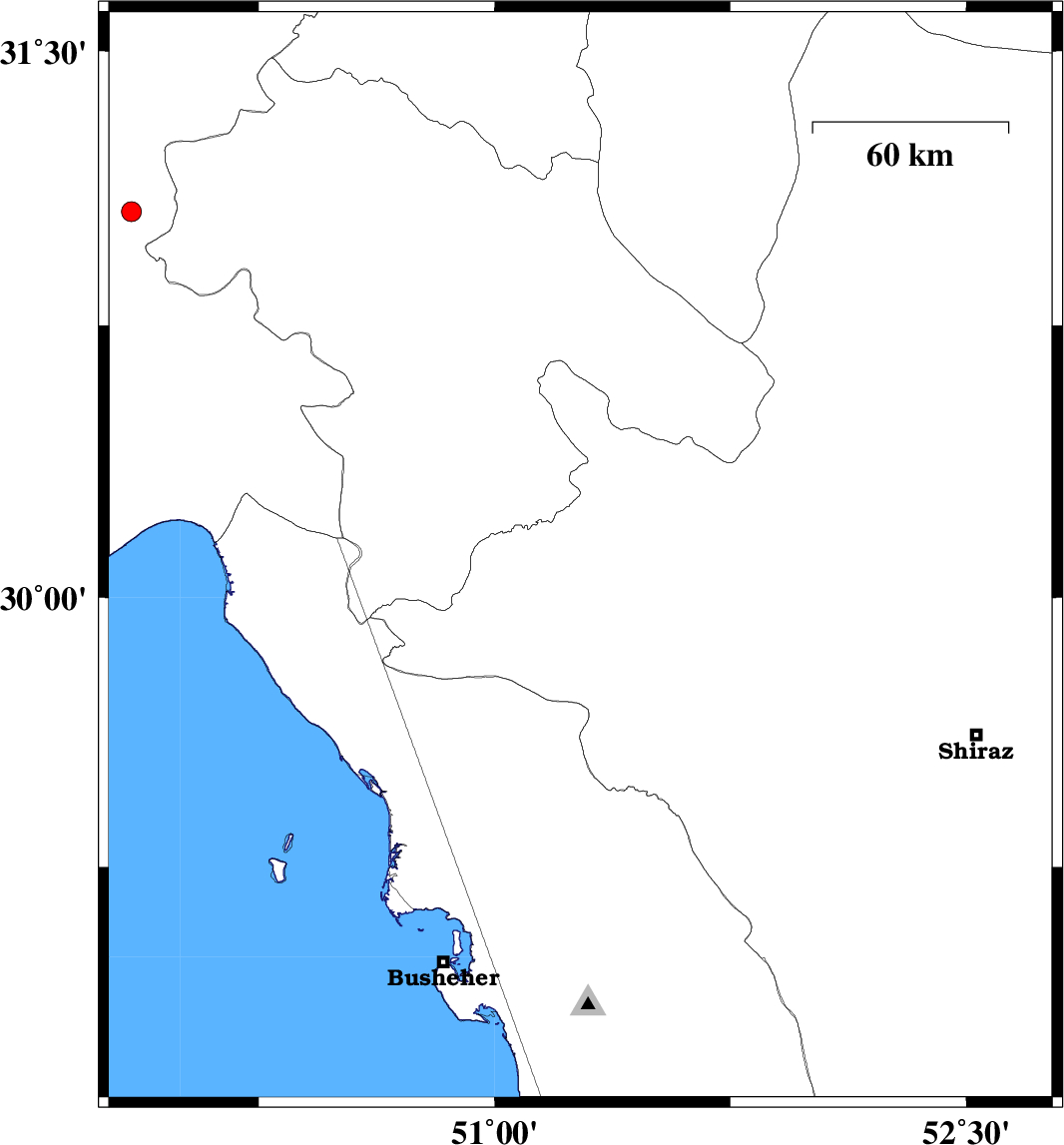 | 2018/11/12 | 05:15:42.2 | 08:45:42.2 | 29.544 | 51.184 | 14 | ML:2.7 | Bushehr Province, 31 km North of Borazjan | ||