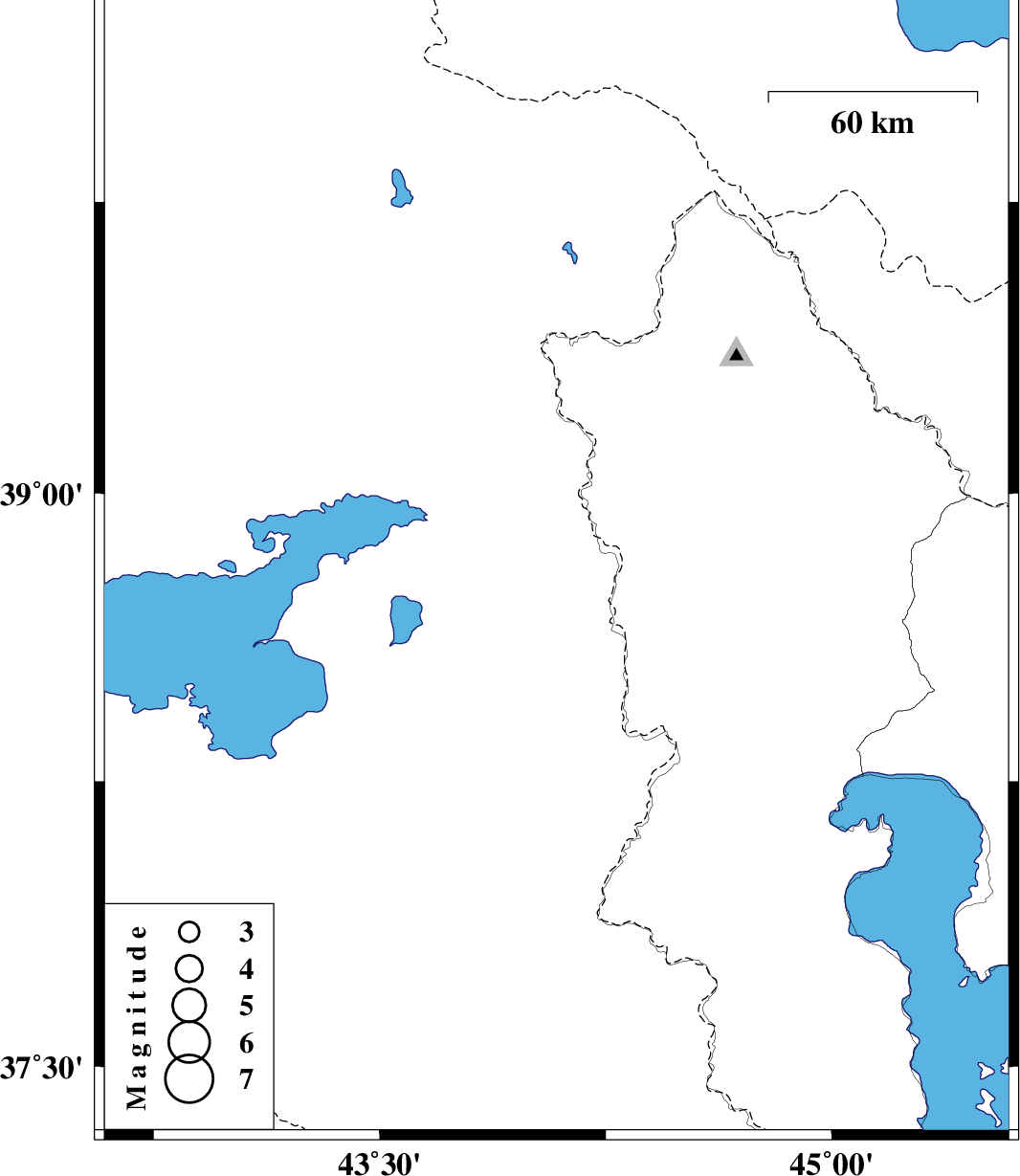 | 2018/11/19 | 05:51:27.6 | 09:21:27.6 | 38.833 | 44.087 | 14 | ML:2.6 | Turkey, 38 km South-West of Seyah Cheshmah |