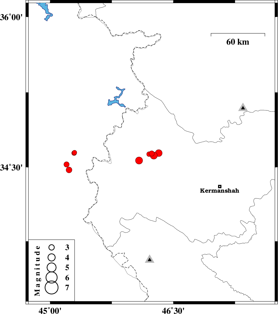 | 2018/11/17 | 19:19:05.2 | 22:49:05.2 | 34.617 | 46.262 | 15 | ML:4 | Kermanshah Province, 29 km South-West of Javanrud | ||