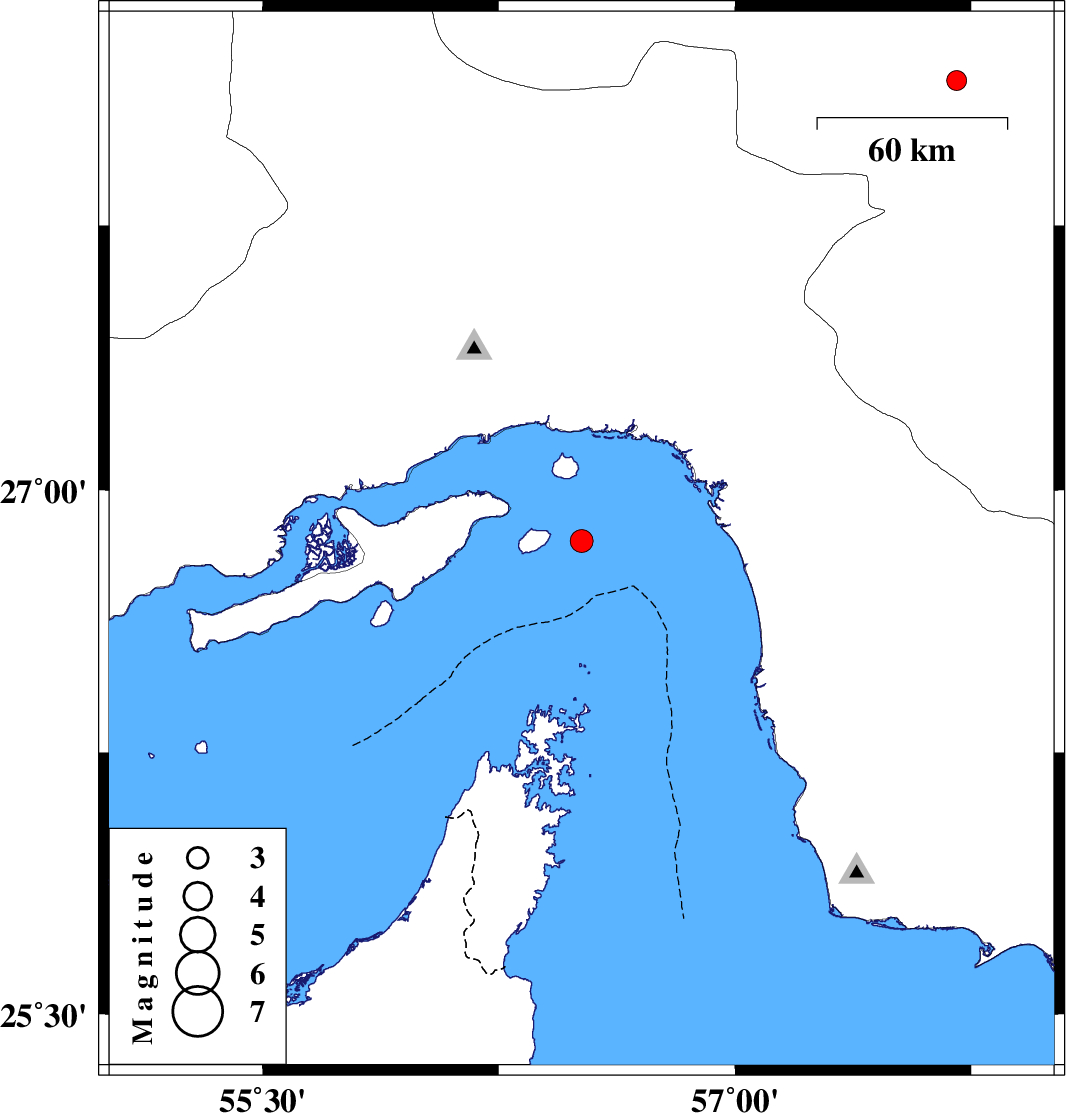 | 2018/11/19 | 21:31:14.0 | 01:01:14.0 | 26.854 | 56.513 | 15 | ML:3.2 | Persian Gulf, 27 km South-East of Qeshm | ||