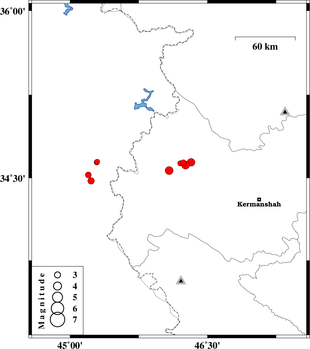 | 2018/11/17 | 19:19:05.2 | 22:49:05.2 | 34.617 | 46.262 | 15 | ML:4 | Kermanshah Province, 29 km South-West of Javanrud | ||