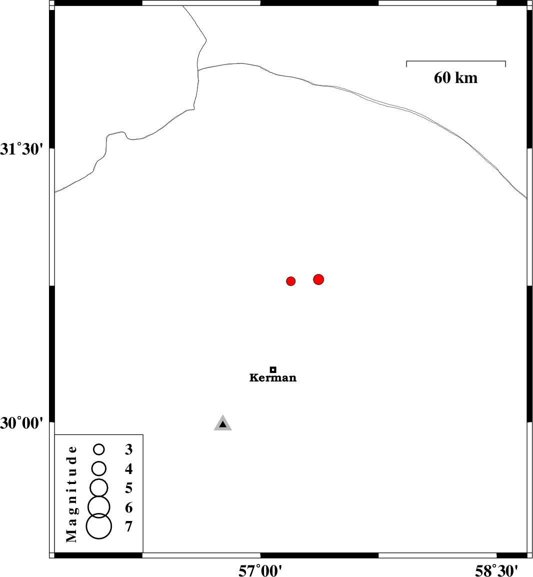 | 2018/11/16 | 16:10:13.3 | 19:40:13.3 | 30.784 | 57.369 | 14 | ML:2.9 | Kerman Province, 62 km North-East of Kerman |