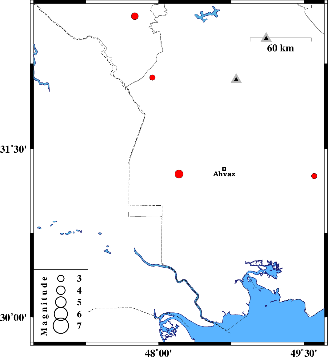 | 2018/12/05 | 00:10:34.5 | 03:40:34.5 | 32.128 | 47.937 | 15 | ML:2.6 | Khoozestan Province, 30 km -West of Shush |