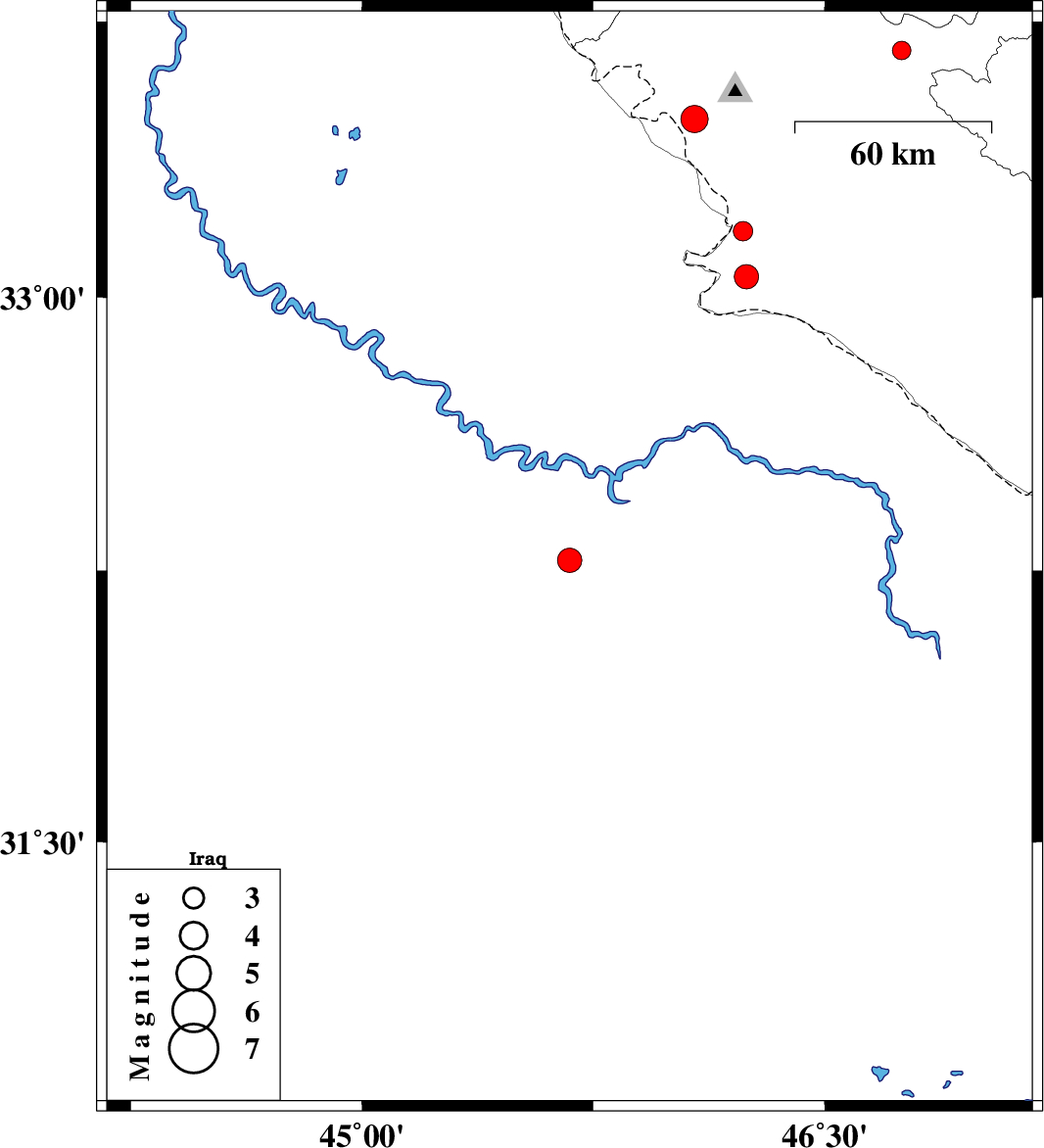 | 2018/12/12 | 23:44:01.1 | 03:14:01.1 | 32.279 | 45.673 | 14 | ML:3.5 | Iraq | ||