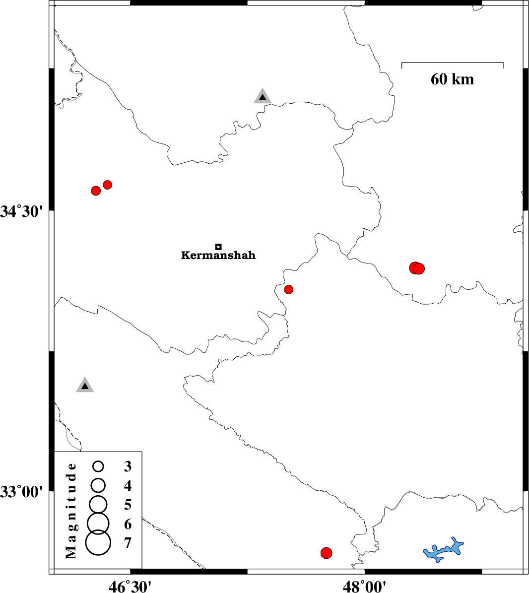 | 2018/12/13 | 11:13:19.0 | 14:43:19.0 | 34.079 | 47.513 | 6 | ML:2.5 | Lorestan Province, 22 km South of Harsin | ||
