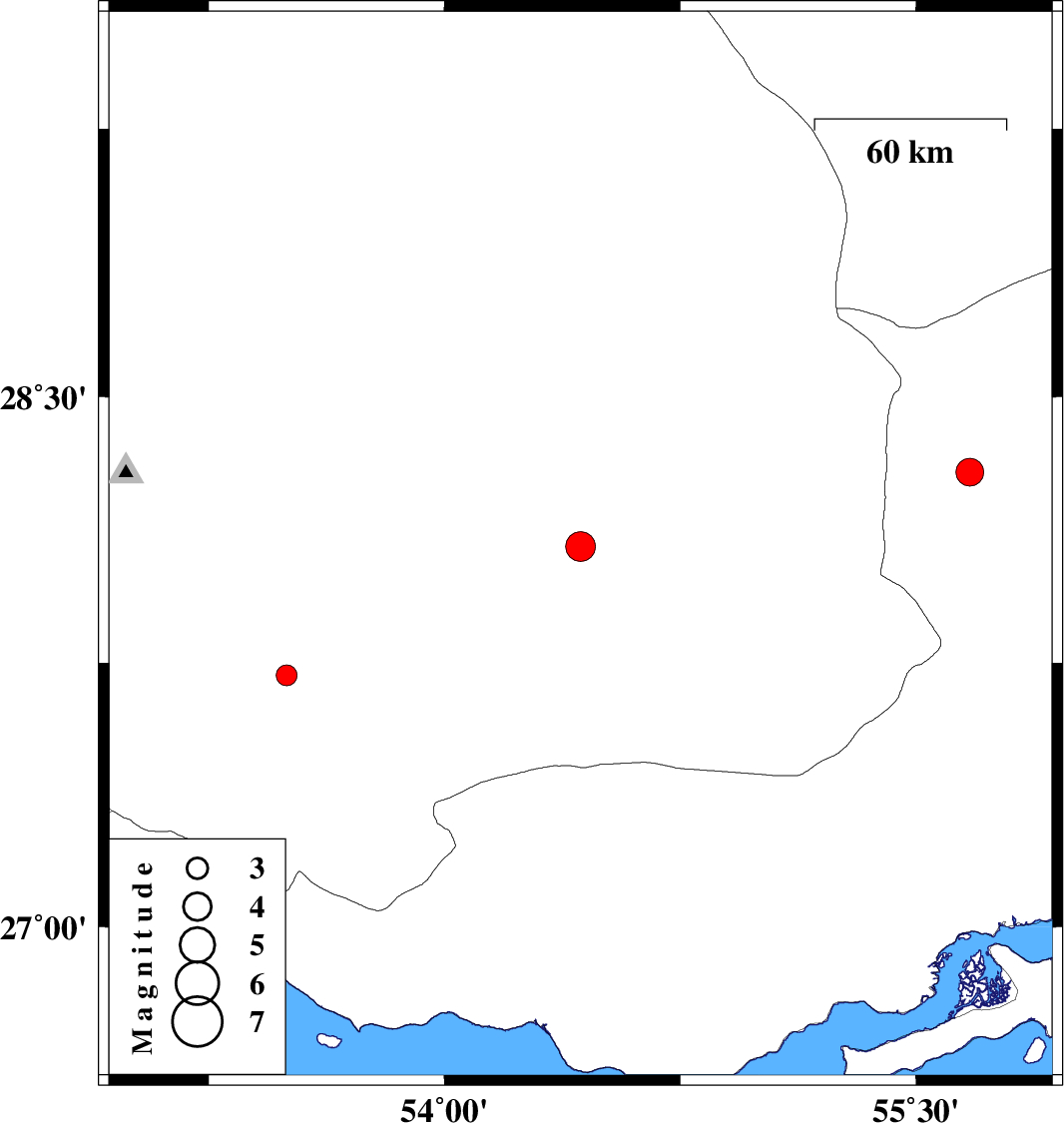 | 2018/12/29 | 23:16:39.8 | 02:46:39.8 | 28.288 | 55.672 | 15 | ML:3.9 | Hormozgan Province, 23 km -West of Hajiabad | ||