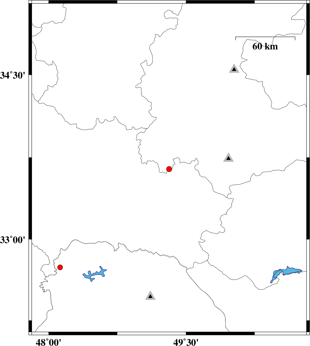 | 2019/01/06 | 20:00:31.3 | 23:30:31.3 | 33.644 | 49.316 | 6 | ML:2.7 | Lorestan Province, 25 km North-West of Azna | ||