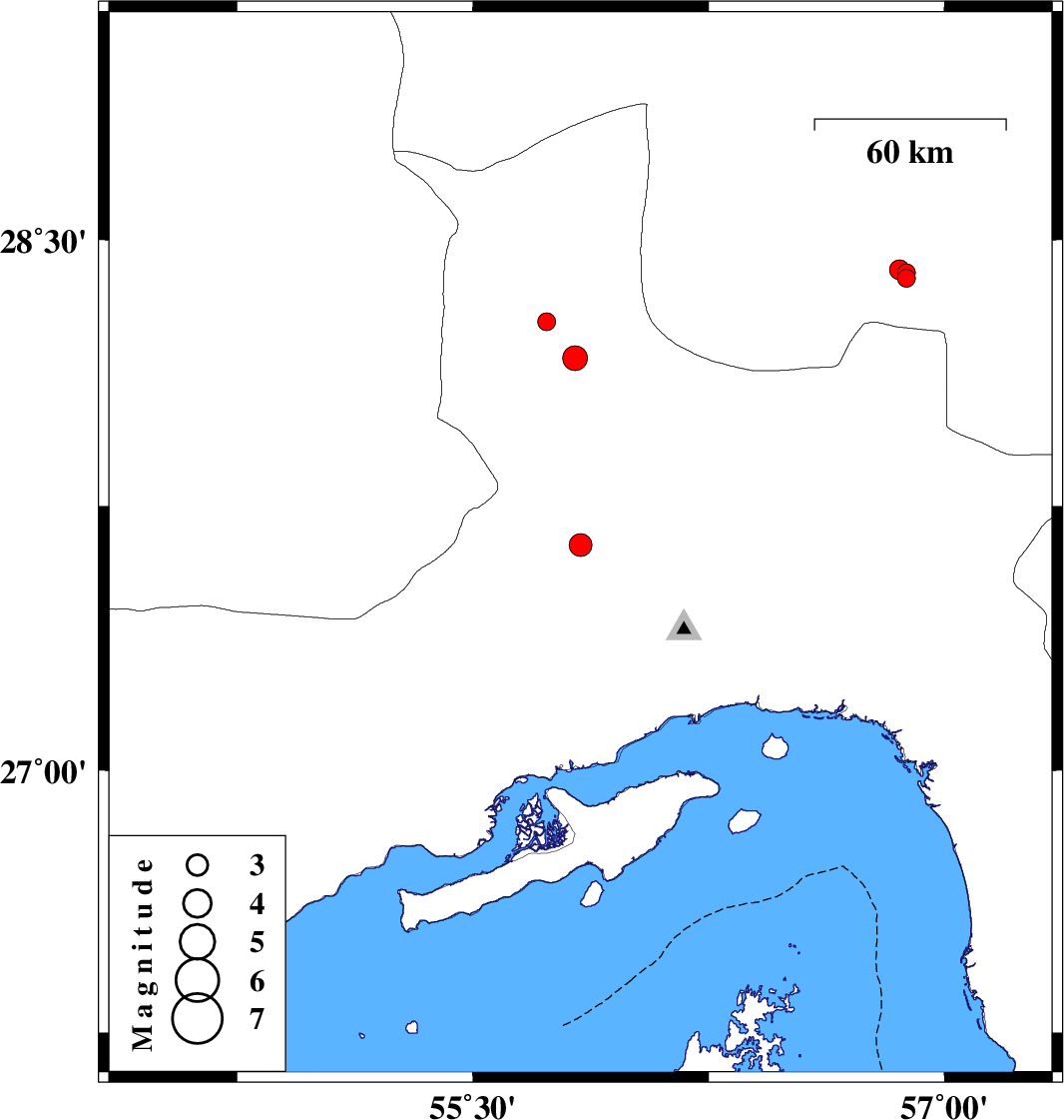 | 2019/01/07 | 16:12:22.3 | 19:42:22.3 | 28.27 | 55.735 | 14 | ML:2.5 | Hormozgan Province, 17 km -West of Hajiabad |