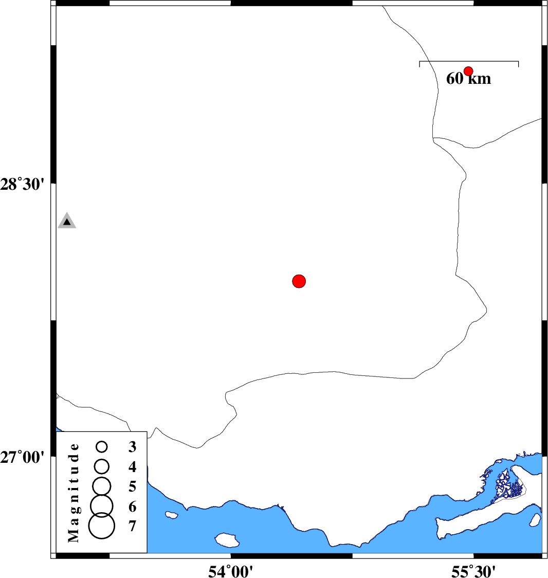| 2019/01/30 | 13:40:08.1 | 17:10:08.1 | 27.964 | 54.42 | 18 | ML:3.7 | Fars Province, 33 km North of Lar | ||