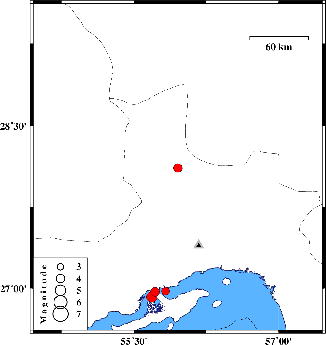 | 2019/02/10 | 10:54:45.9 | 14:24:45.9 | 26.919 | 55.687 | 9 | ML:5 | Persian Gulf, 58 km -West of Qeshm |