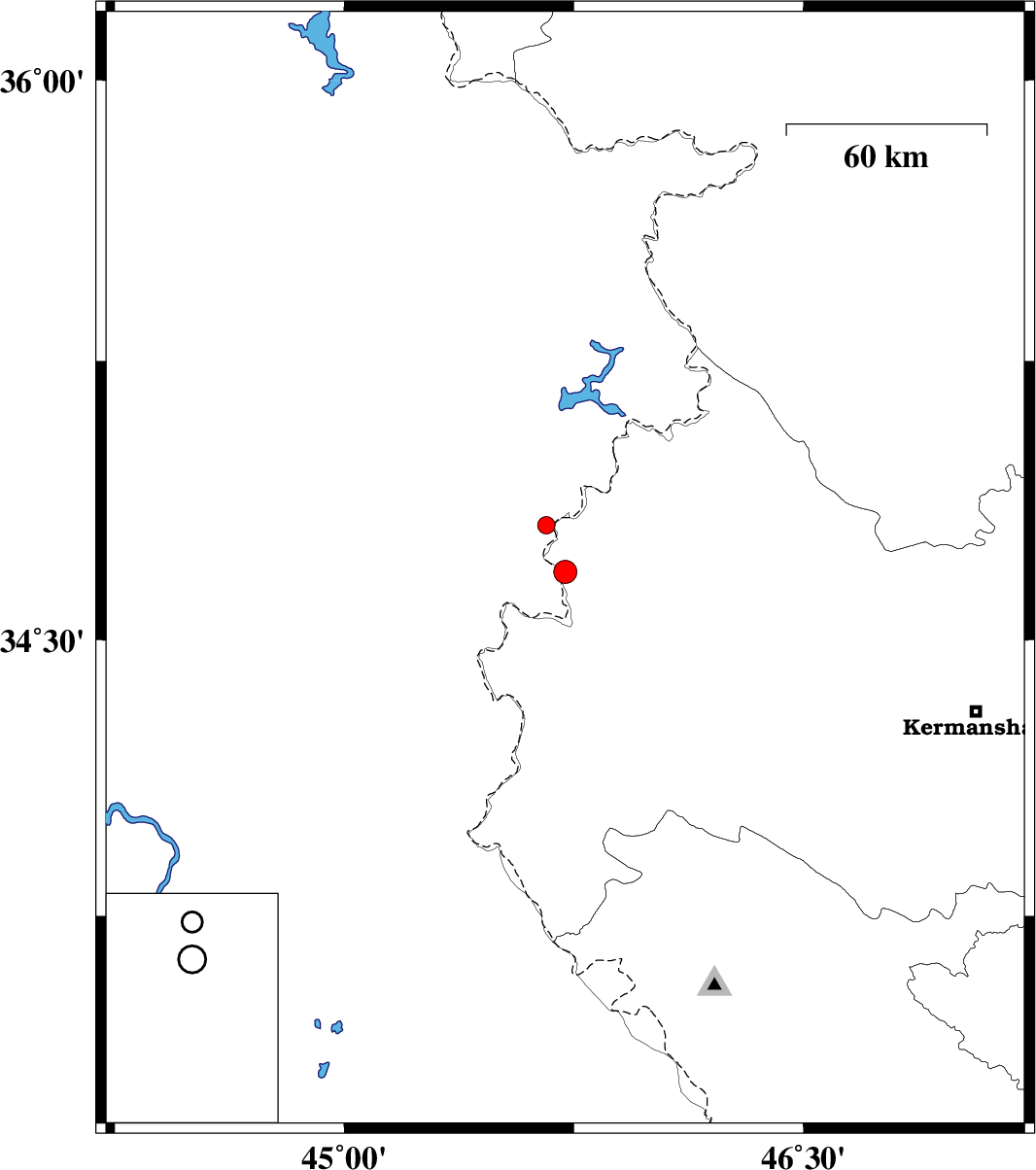 | 2019/02/16 | 06:01:22.0 | 09:31:22.0 | 34.683 | 45.722 | 14 | ML:3.4 | Kermanshah Province, 13 km -West of Tazehabad | ||